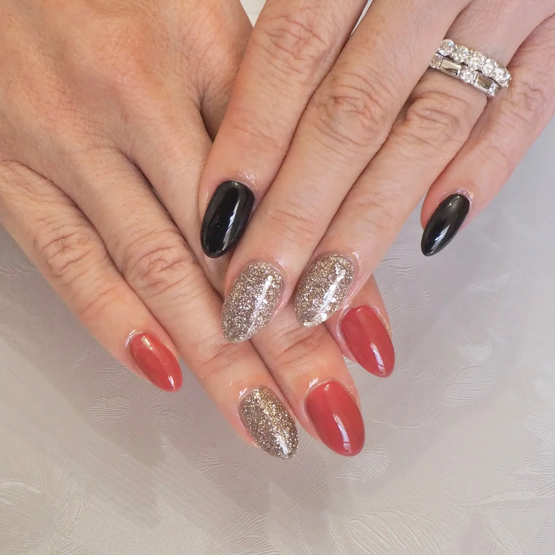 同じデザインでも「片手ずつ色が違う」だけで、指先の動きに表情が生まれます。