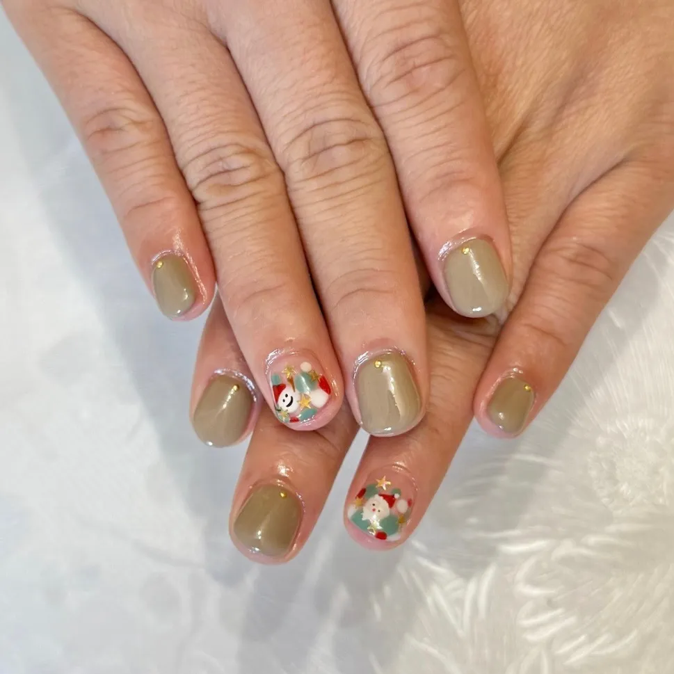 落ち着いたカラーの中に、少しだけ遊び心をプラスした大人のトナカイネイル。控えめなのにしっかり季節感があって、指先を見るたびにふっと気持ちが和らぐデザインです。