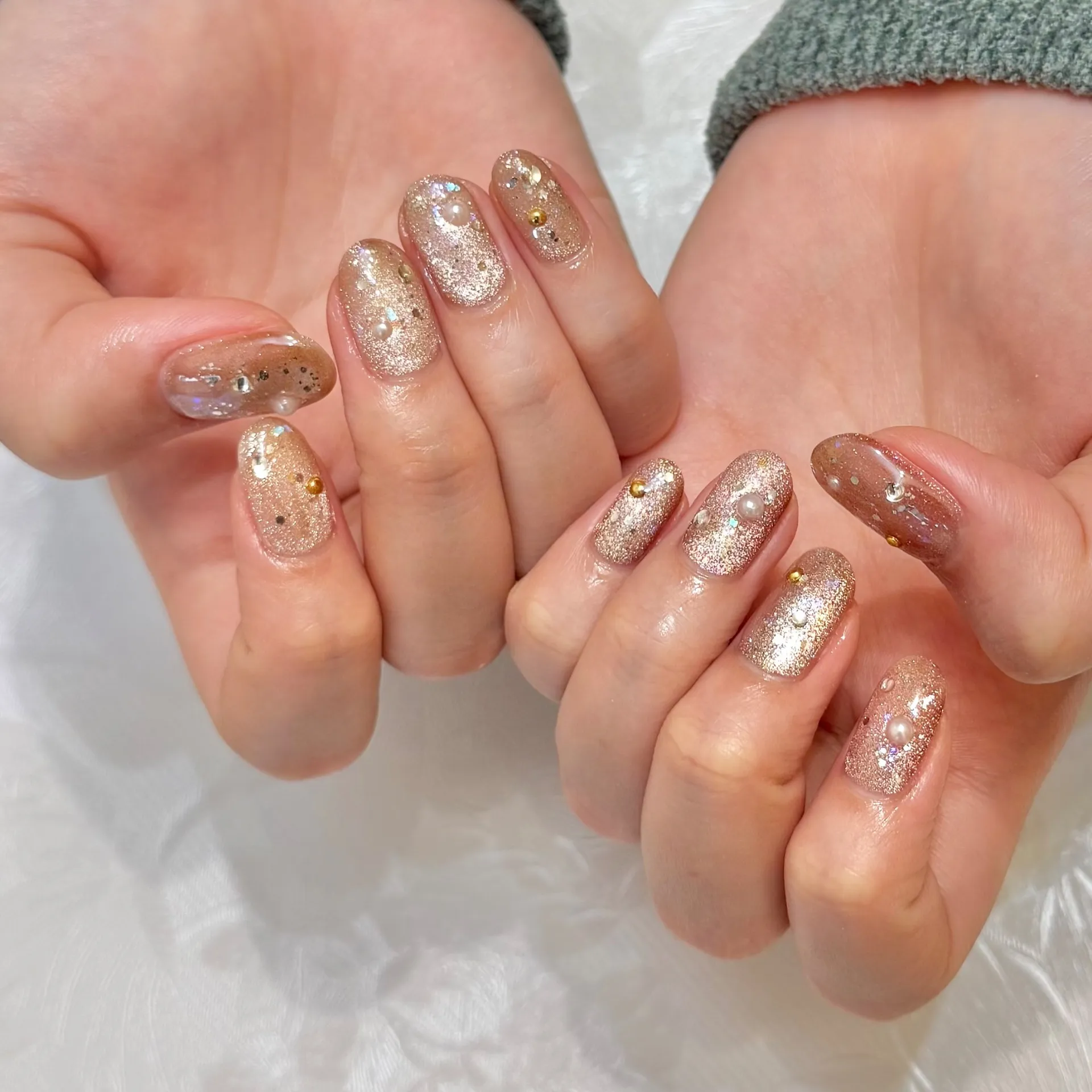 名古屋駅プライベートサロンで叶える、大人かわいいベージュネイル こんにちはnailsalonmagicpop小塚です。指先を上品に見せたい方におすすめのデザインです。パール感のあるベージュをベースに、小粒のストーンを散りばめて、さりげない輝きをプラスしました。シンプルな…